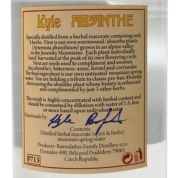 Im Gegensatz zu vielen Produkten dieses Herstellers ist der `Kyle´ ein reines Destillat. Er wird aus nur vier Zutaten hergestellt: Selbst angebauter Wermut, Anis, Fenchel und Koriander.