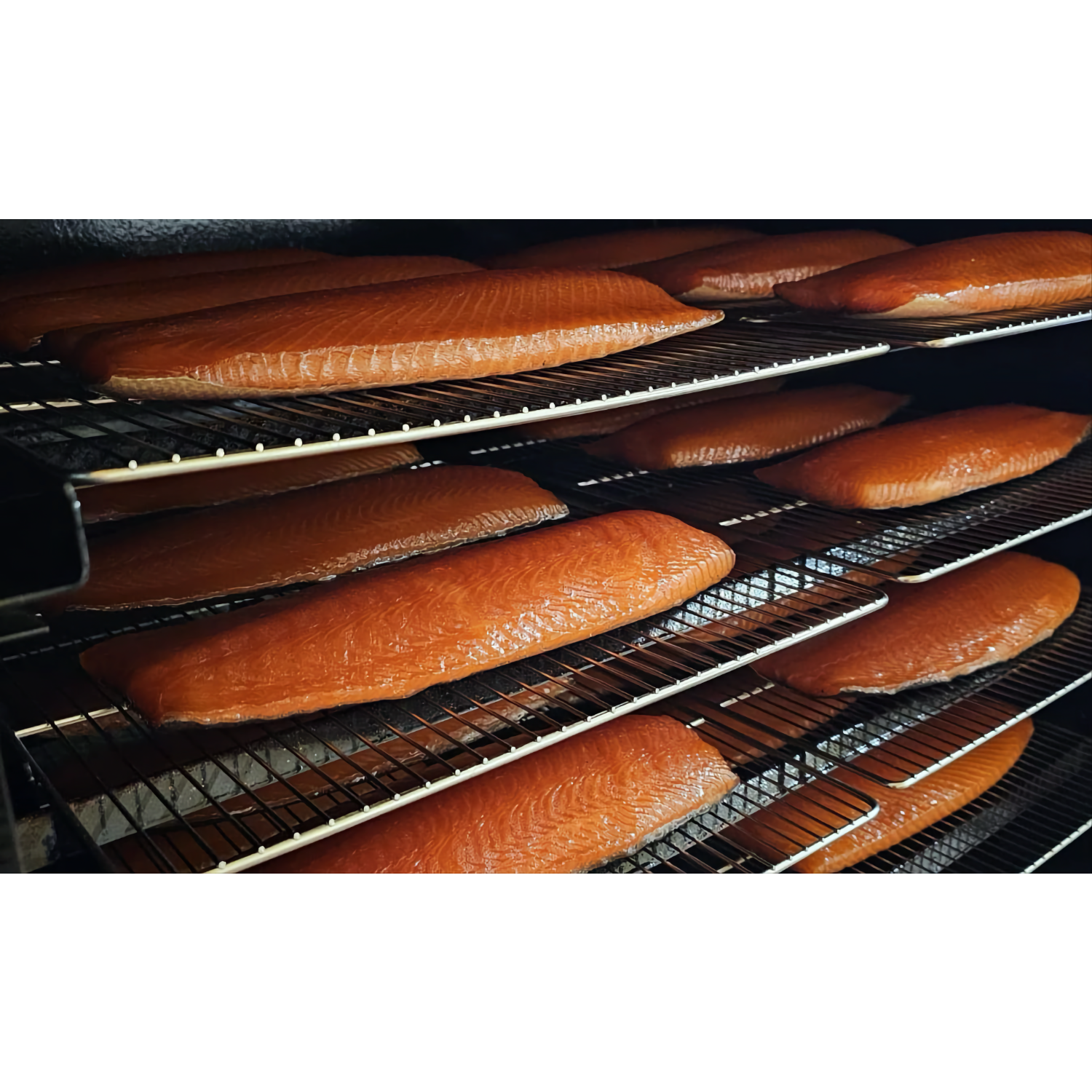 Wie der Name erahnen läßt wird der Lachs im Schwarzwald bei den Spezialisten von Glut & Späne nach traditionellem Handwerk schonend kalt geräuchert, dies geschieht langsam und bei niedriger Temperatur ausschließlich über Naturholz. Die Struktur bleibt dadurch zart, feinfasrig und saftig, gleichzeitig bildet sich die charakteristische rauchige Tiefe.