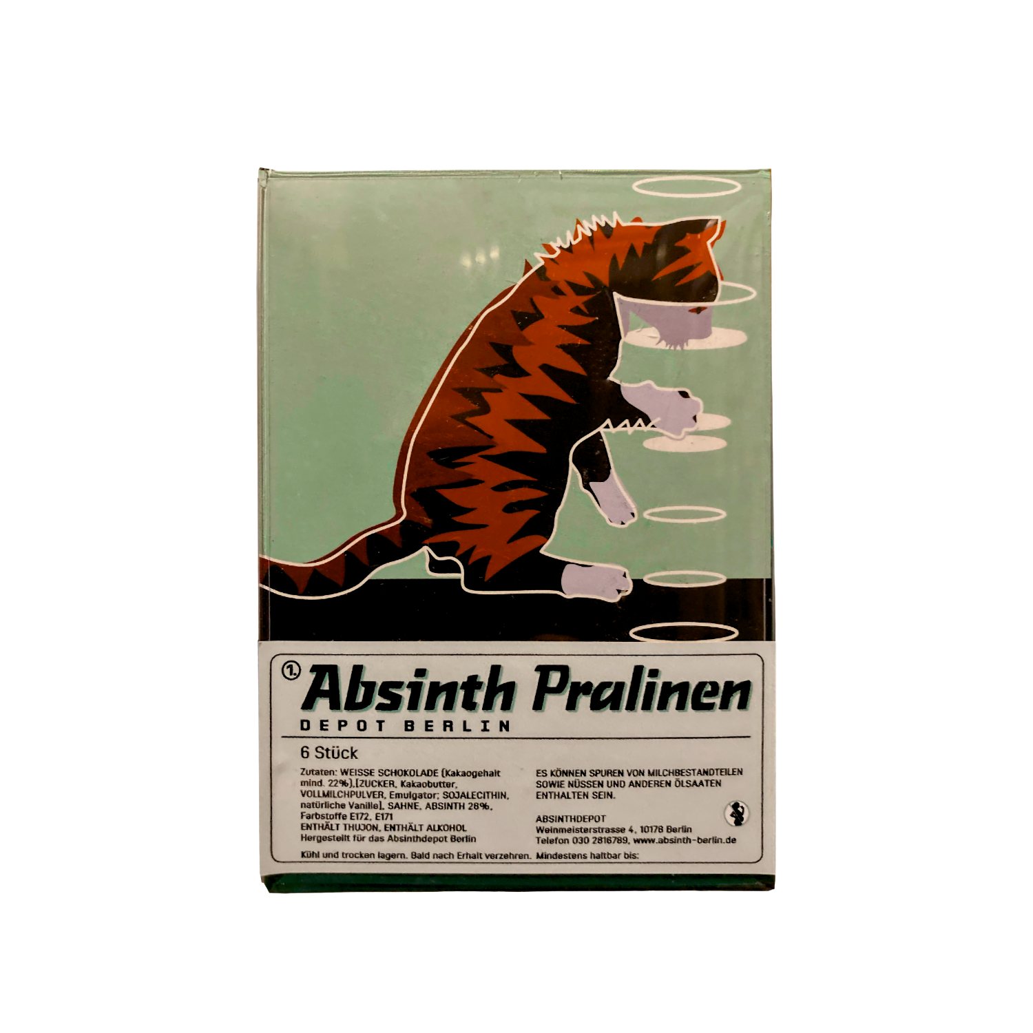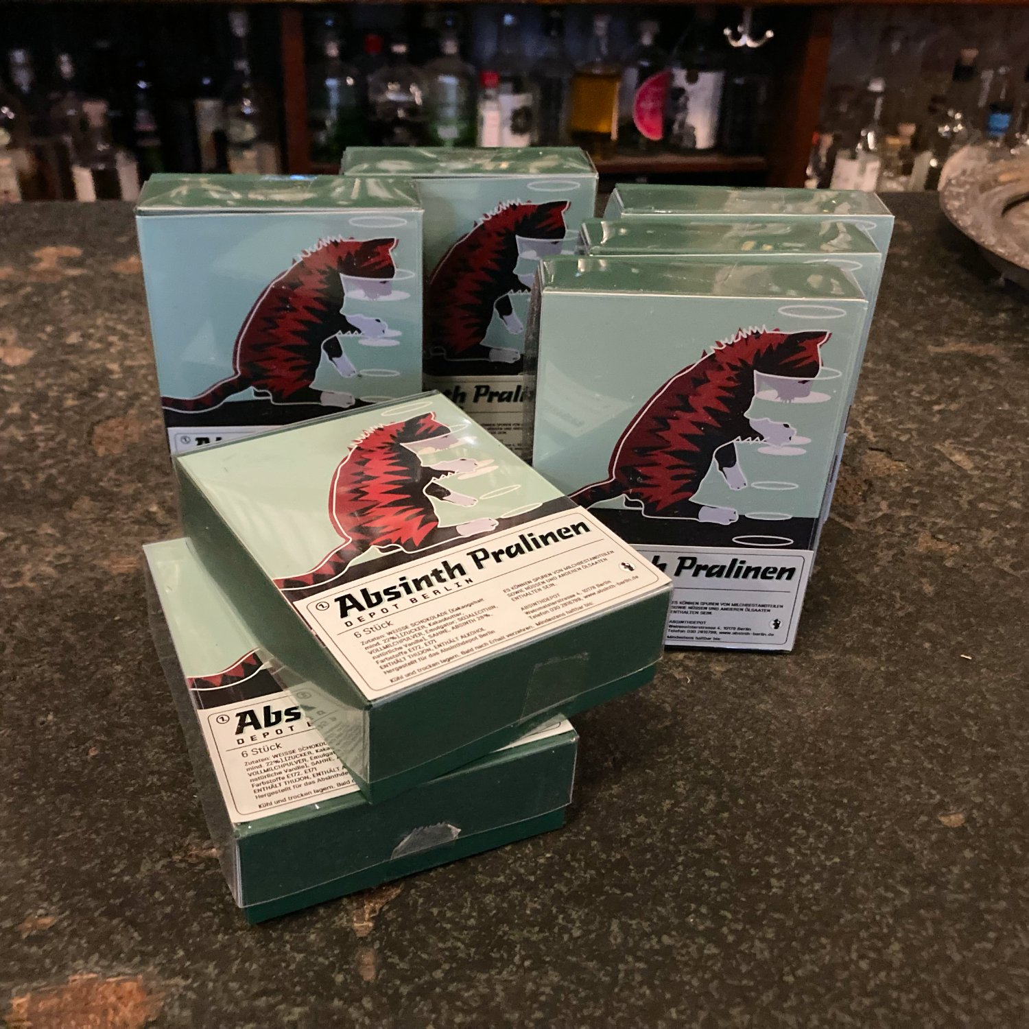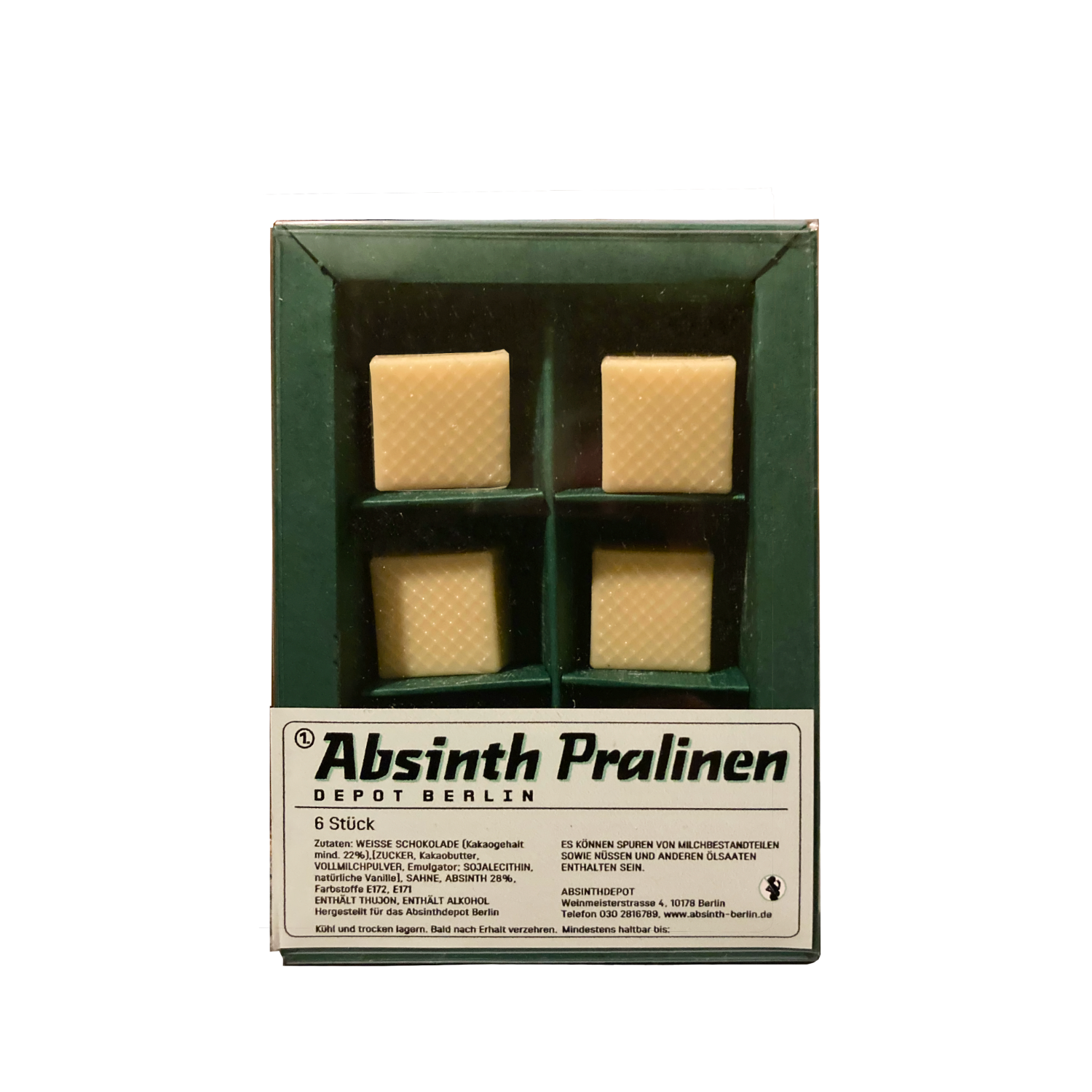 Die Packung enthält 6 wunderbar bitter-süße Absinthpralinen. Süße weisse Schokolade umhüllt eine Cremefüllung mit dem unverwechselbaren Geschmack unserer Hausmarke Bitter.